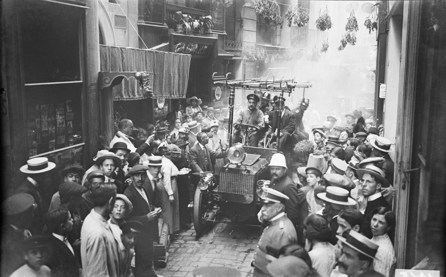 pregonero, tambores, las calles agolpadas