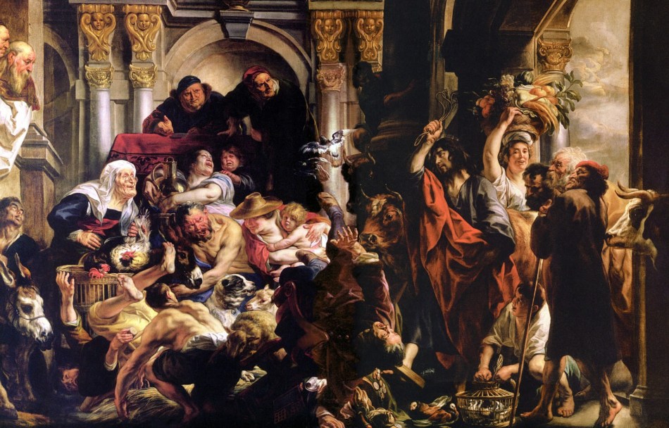 Por otra parte, ¿cómo reaccionarían ellos, por iniciativa propia cuando Cristo dice: «Sin mí nada podéis hacer?» (Jn 15,5); Es ser completamente insensato querer comerciar así con Jesús, es no saber nada de la verdad. Por eso nuestro Señor echa fuera a los vendedores del Templo. La luz y las tinieblas no pueden habitar juntas en el mismo lugar; pues Dios es luz, es verdad y luz en sí mismo. Cuando entra, pues, en el templo echa fuera de él a la ignorancia; la Verdad no soporta cualquier espíritu mercantil.