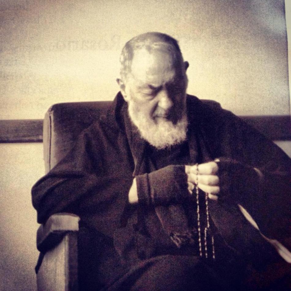 «P. Pío oraba mucho aún fuera de las horas de oración comunitaria. Encontrarlo en el coro (lugar donde rezan los religiosos en las iglesias), o en su cuarto haciendo oración, era una cosa normal. Le gustaba mucho ya entonces la oración del Santo Rosario. En sus propósitos espirituales escribió de rezar cada día quince rosarios.
