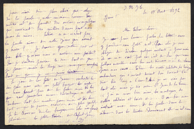 J.M.J.T. 15 de agosto de 1892 Jesús + Celina querida: No puedo dejar salir la carta¹ sin añadirle unas letras.Continue Reading